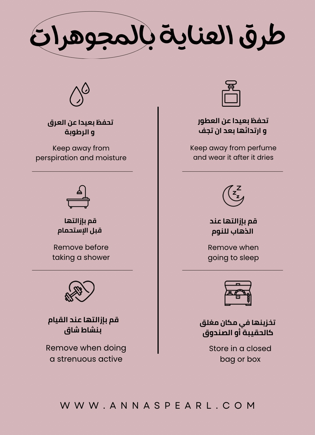 *بإتباع هذه النصائح البسيطة يمكنك الاستمتاع بمجوهراتك لفترة طويلة والحفاظ على قيمتها الجمالية